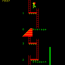 • BUG: On the ratings screen, if you answer enough questions to see the character climb up at least 3 levels, you’ll see him climb up one step higher than he should (picture #2). You’ll see him climb up another step higher if he reaches another 3 levels (picture #3). {Scott Stilphen}