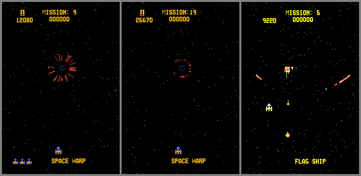 • 2 versions exist – easy (early) and hard (later). Starting at mission 9, the easy version has a double ring formation in the center of the Space Warp screen (picture #1); the hard version has a ring and “square” (4 dots – picture #2). The hard version corrects a bug (described below).