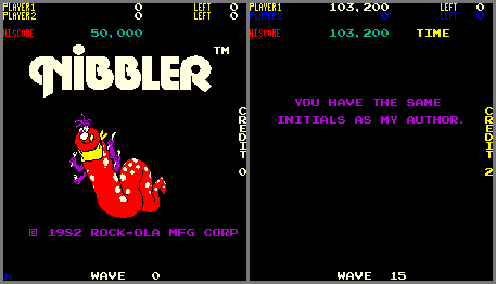 • HIDDEN MESSAGE: If you enter the initials “JHU” (for programmer Joe Ulowetz ) for the high score, the message, “YOU HAVE THE SAME INITIALS AS MY AUTHOR” will briefly appear (picture #2). {Tim McVey}