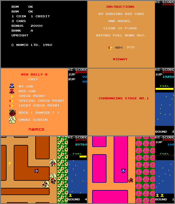 • An easier version called New Rally-X (picture #4) was released a year after the original (picture #3). The differences are: