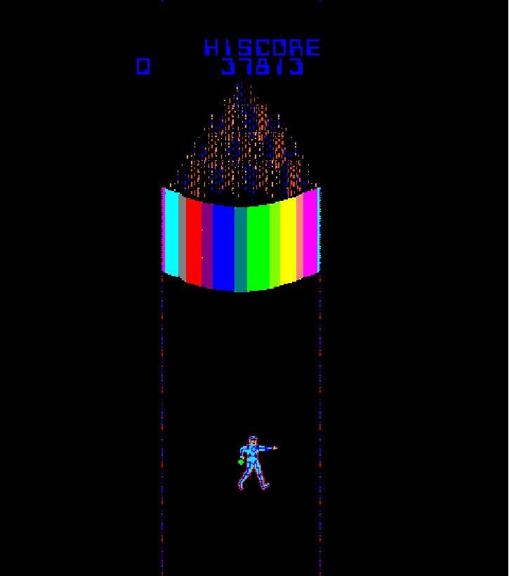 Grid Bug stage: Sometimes a Solar Sailor will appear at the start, sailing across the top of the screen. It will drop a bit, which is worth 5,000 bonus points if you can grab it! Theres a 50% chance of it appearing, but only on certain levels, and some levels can never deploy a bit prize. The check whether or not to deploy the bit prize has 3 steps. First, it checks what I call the difficulty. This is dependent on the game level and on the actual difficulty setting which is set in the service mode. If this value is less than 9, a bit will never be deployed. Next, it checks a value from a table based on which pattern of grid bugs is being played. There are 9 patterns. Of the 9, only 3 have a value which will allow for the bit prize to appear. If the pattern is not correct, a bit will never be deployed. Finally, the game generates a random number and looks at one of the bits. If it is clear (50% chance), it does not deploy the bit prize. If it is set (50% chance), a bit prize is deployed. The random number is generated from the Z80 R register, which is an excellent way to generate an extremely random number. Its the same register that is used for random fruit prizes in Ms. Pac-Man past the banana level. The test for the bit prize is called every time the grid bugs screen is started. So, if a player dies on the grid bug screen, this test is called again and could deploy a bit, or not, depending on the factors listed above. {Don Hodges}