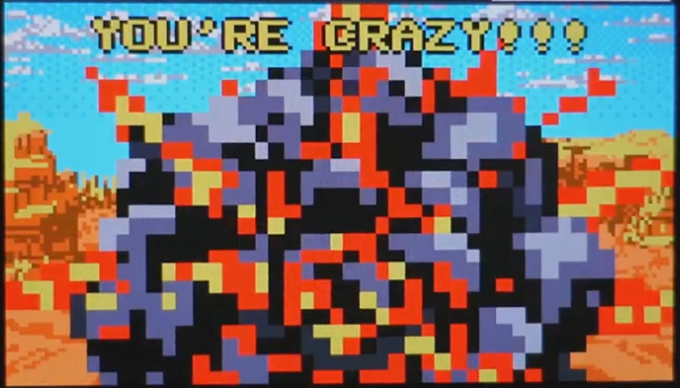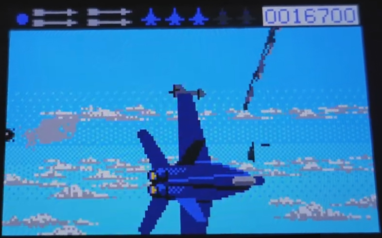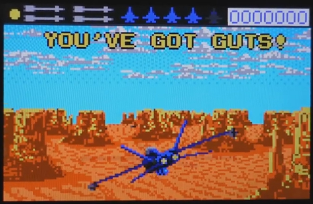 • Hidden bonuses: On the canyons level, activate your afterburners at the start of the first set of canyons. You'll get 30,000 points and the message, "YOU'VE GOT GOTS!" (picture #1). If you activate your afterburners at the start of the second set of canyons, you'll get the 65,000 point "Lunatic" bonus. If you crash, you'll get the message, "YOU'RE CRAZY!" (picture #2).
