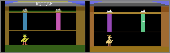 • The PAL version doesn’t have the eggs sign on the roof of the house (picture #3) that the NTSC version does (picture #2).