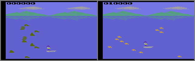 • BUG: The score counter won’t work until you hold the FIRE button down for at least a second while moving. If you hit any objects, you will have to repeat this. Because of this, it’s possible to finish the course w/o scoring any points! {Scott Stilphen}