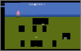 • BUG: If you play the game in the attract mode and shoot a woman or child, the “WANTED!” text at the top will become corrupted (see picture). It will get worse each time you repeat this.