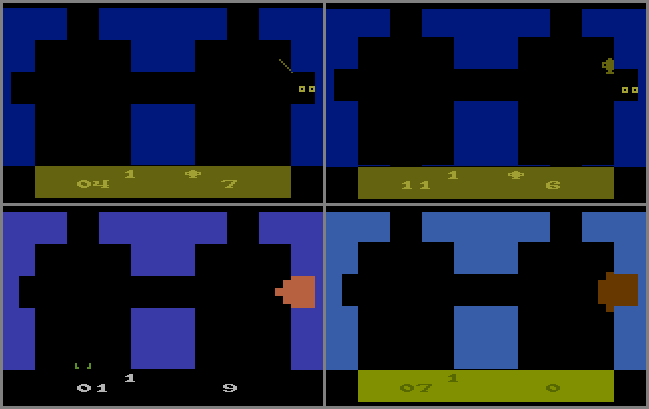 • BUG: A typo in the code causes an incompatibility issue. Reading a write-only register on most 2600s returns the last value on the bus, and the last value on the bus is the last byte in the opcode. The programmer made a typo. At $F44F, the game is subtracting using the value in $0f, instead of subtracting using the literal value $0f. Since the last byte of the opcode is $0f, most 2600s will pull this value and wind up working as intended. But on 1 out of 100 2600s, the "last value on the bus" result doesn't happen. Same is true for emulators that don't similarly handle reads from write-only registers. {Mike Saarna}