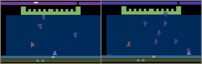 bottom, the princess will move down a little (picture #1). If she is captured and pulled off-screen while like this, part of her dress will wrap-around and appear in the lower-left corner (picture #2). {Scott Stilphen}
