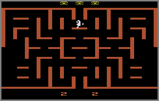 • BUG: Start a new game but hit SELECT before the screen is finished being “drawn”. If you don’t see your character on the screen, pull DOWN and he should appear. You’re then free to roam the maze (see picture).