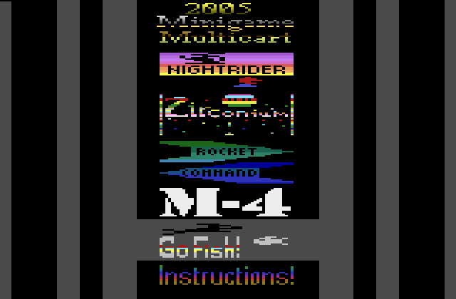 • On the menu screen, if you hold the joystick either UP or DOWN long, another game will appear - Go Fish. This was hinted at on the artwork; a screenshot of Go Fish appears behind the "5" in "2005". An Oct 2006 contest to find it was won by Darrell Spice Jr. The prize was a 1-of-a-kind cart of Bob Montgomery's "Hunt The Wumpus".