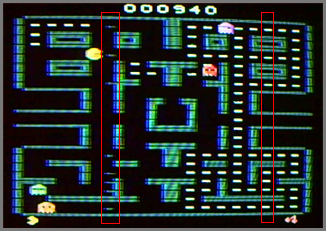 • BUG: Incompatible with Atari models using certain TIA chips (such as AMI’s C010444-01 7812MS and Synertek’s C010444D 8404) - stray dots (the same color as the maze) will appear on the left side of the screen (as shown outlined – see picture). If the (horizontally) corresponding dot in the 3rd column from the right (as shown outlined – see picture and video) is removed, it will disappear. {Scott Stilphen}