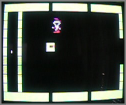 • EASTER EGG: At the title screen, press the FIRE button 3 times to access a hidden game (see picture). {Cyril Dennis}