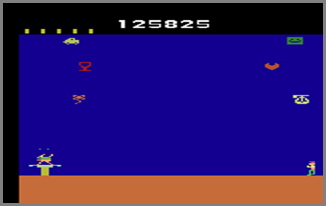• The level number smoothly rolls from 99 back to 0; the behavior of the flying objects seems to reset to the easiest patterns if you get to Level 101, although the bonus points earned (and timer to hit the objects before losing a chance) do not reset in value. {Gordon Taylor}