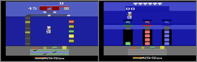 • The game automatically stops when one million points is reached - the score will turn to six chef hats at that point (Picture #2) and both the "extra performance points" sound and "game over" tune will play at the same time. When the "game over" tune ends, the Activision logo will start rolling at the bottom of the screen. {Gordon Taylor}