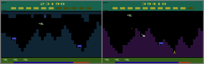 • The final section of the game will never spawn fuel tanks, so depending on your fuel level, it is entirely possible that you can run out of fuel during the transition to the next loop of the game (before the game gives you another chance to bomb a fuel tank). This means it may be worthwhile to deliberately crash once you enter the final section if you think you won't have enough fuel to make it through - this will let you restart the section with a full tank of fuel. {Gordon Taylor}