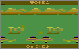 • EASTER EGG: On level 6 (and up), fly 32 screens to the right of the bunker (or 224 to the left) and up near the top mountain range. Large “LG” initials (for Larry Gelberg) will appear, and you’ll receive 3,200 points! {Larry Gelberg}