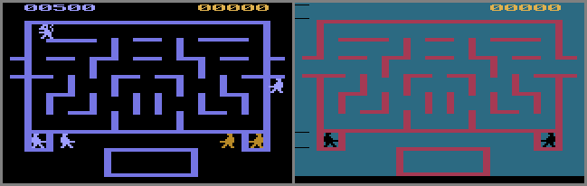 • BUG: If you and/or the other player are down to either their last player (or one of you has died), there is always a Worrior in both the lower-corner “boxes” (picture #2 and video). The only time you can see it is if you hit the Worluk (and the Wizard doesn’t appear), the screen flashes colors, revealing them (since they’re colored black). {Scott Stilphen}