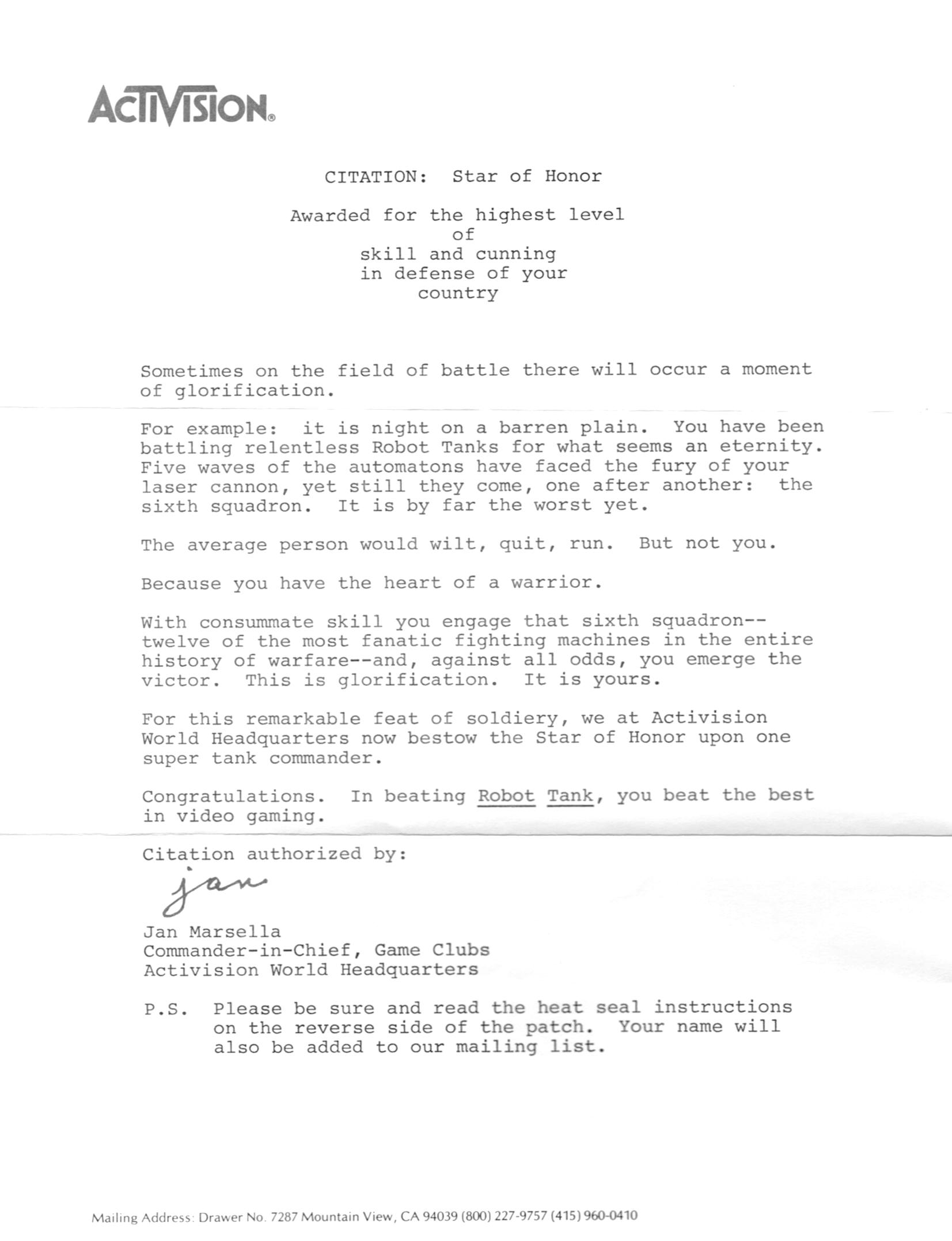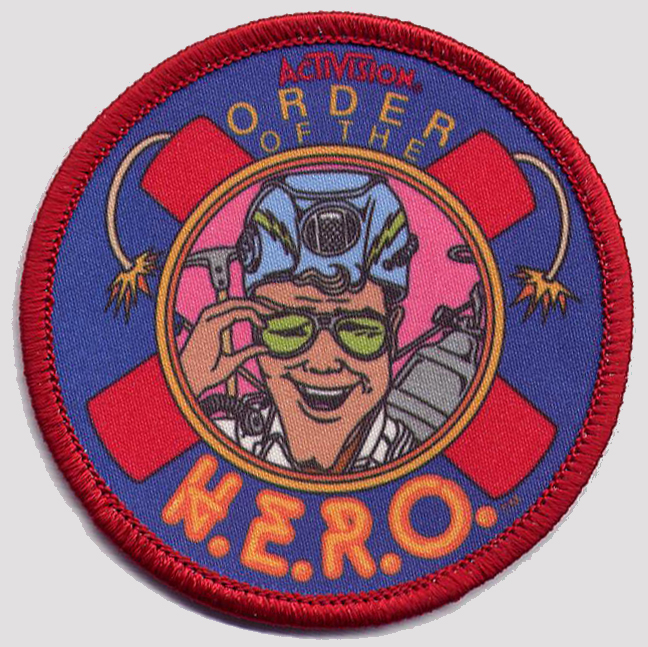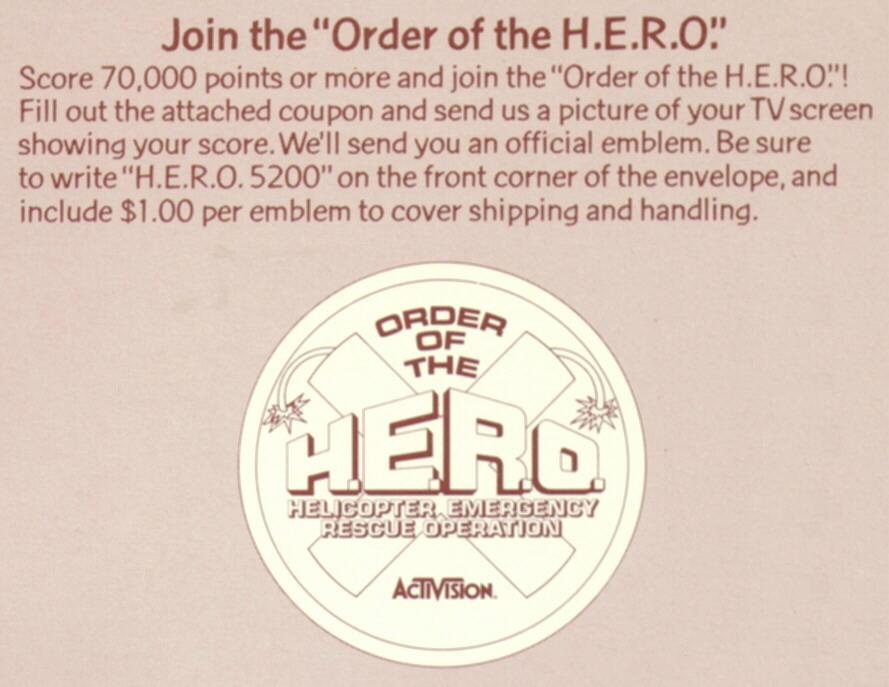 H.E.R.O.75,000 points or more 2nd photo is from the Atari 5200 manual, showing the patch that was supposed to be awarded |