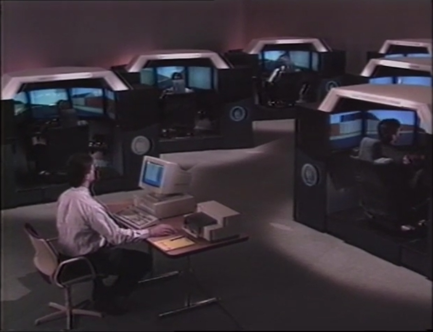 Atari Games Corp. (AGC) developed this police training simulator. Each simulation station featured 5 monitors offer 2s5 degree field of view, with an option for 8 monitors for a full 360 degree view. Each station featured realistic vehicle controls. Up to 8 simulators could be linked together for interactive group training scenarios.